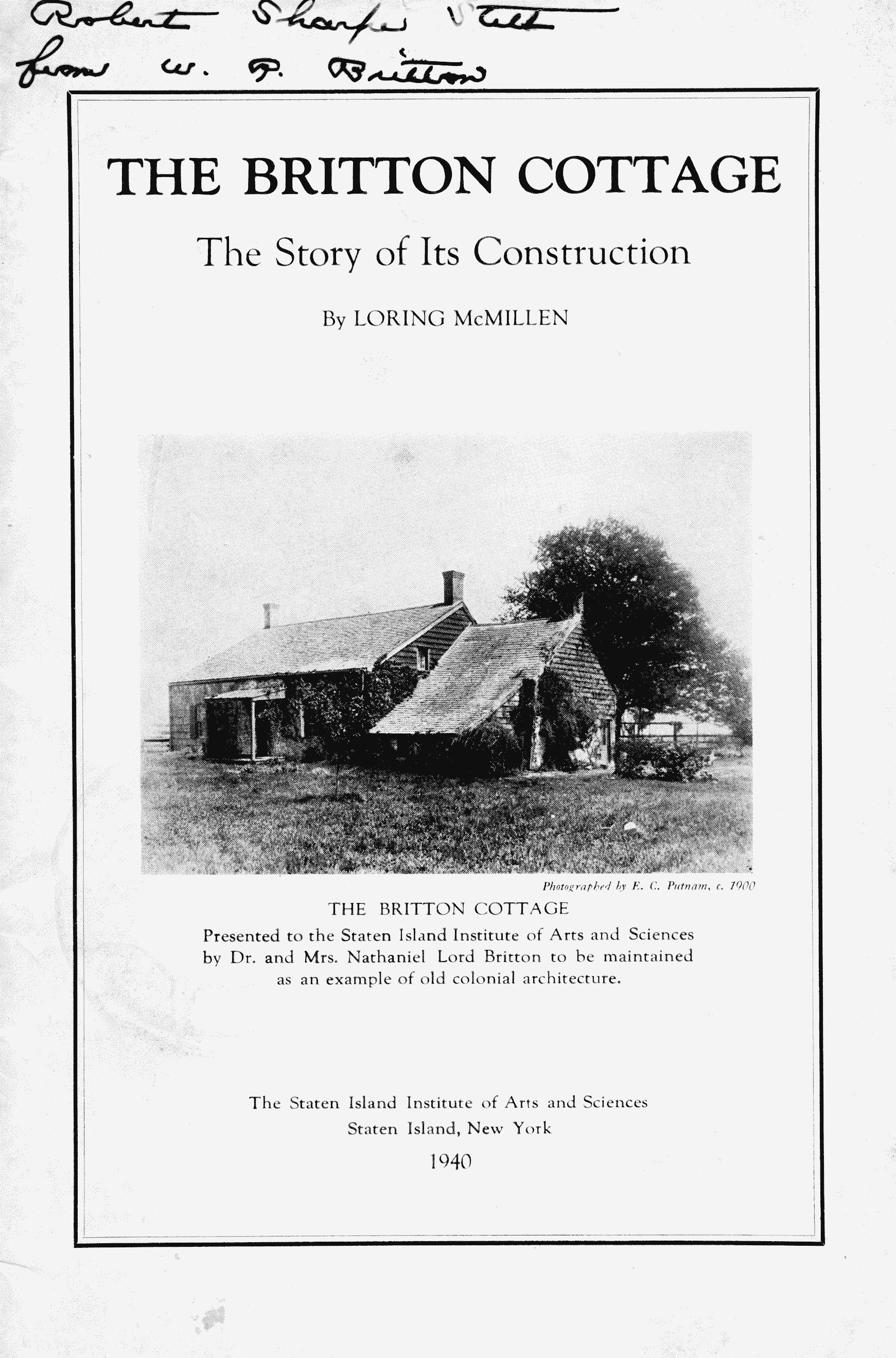 The Brittain Cottage The following pages are available for viewing on a page by page basis to minimize file size. The original book did not number pages that included illustrations, and blank pages have not been included in these page numbers; as a result, actual page numbers will not match with the book. The image size will be larger than your screen, but is designed for high quality printing when downloaded. |