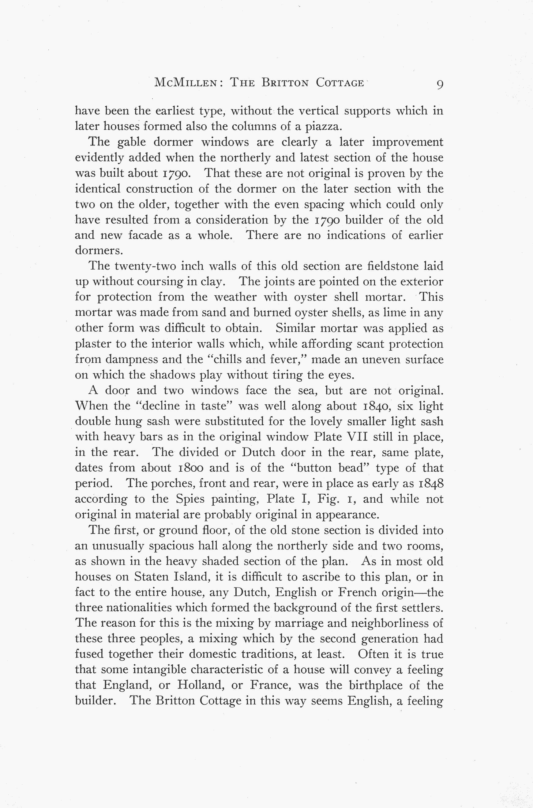The Britton Cottage was built in 1699, and can be seen on Staten Island, NY at the Richmondtown Restoration. It is one of the most unique examples of colonial architecture that can be found today. The original house was the stone section. Each successive addition was constructed in a different architectural style that was prevalent in its day. A limited production (only 200 copies) book, The Britton Cottage, details every facet of the house. A full copy of the book is available here, reprinted with permission. |